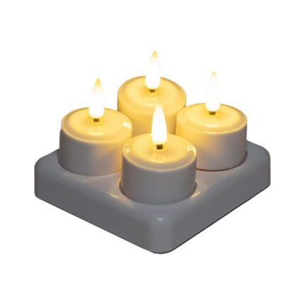 LED Inductie Theelichtjes Wit – Ø 3,8 cm (Set van 4, 3D Vlam)